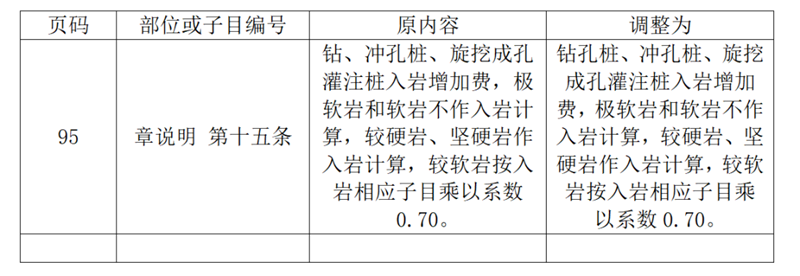 近期,我站組織專家研究分析了廣東省建設工程定額動態管理系統收集的《廣東省房屋建筑與裝飾工程綜合定額(2018)》旋挖成孔灌注樁(旋挖樁入巖增加費)與市場實際存在一定差異的反饋意見。為加強定額動態管理,經廣泛調研與測算,現將旋挖成孔灌注樁(旋挖樁入巖增加費)項目調整后的內容印發。本調整內容與省現行工程計價依據配套使用,請遵照執行。執行中遇到的問題,請通過“廣東省工程造價信息化平臺——建設工程定額動態管理系統”及時反映。