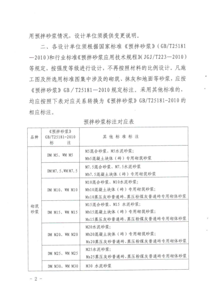 答:詳見附件《廣東省住房和城鄉(xiāng)建設(shè)廳關(guān)于明確預(yù)拌砂漿設(shè)計標注有關(guān)問題的通知》(粵建散函〔2015〕453號)。