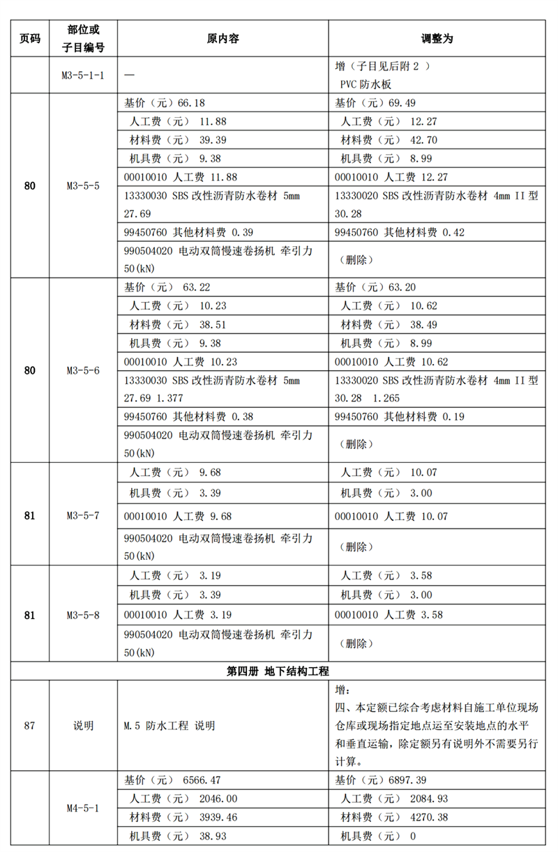 《建筑與市政工程防水通用規(guī)范》GB55030-2022(以下簡稱為“防水通用規(guī)范”)已頒布實施,根據(jù)新舊防水規(guī)范之間的差異,我站組織專家調(diào)整了《廣東省城市軌道交通工程綜合定額 2018》防水項目相關(guān)內(nèi)容,現(xiàn)印發(fā)你們。所調(diào)整內(nèi)容與我省現(xiàn)行工程計價依據(jù)配套使用,除合同另有約定外,已經(jīng)合同雙方確認的工程造價成果文件不作調(diào)整。