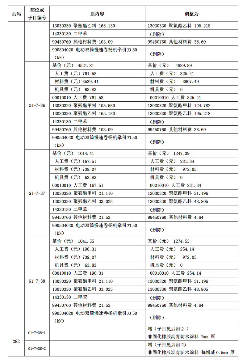附件:《廣東省城市地下綜合管廊工程綜合定額 2018》動態調整內容