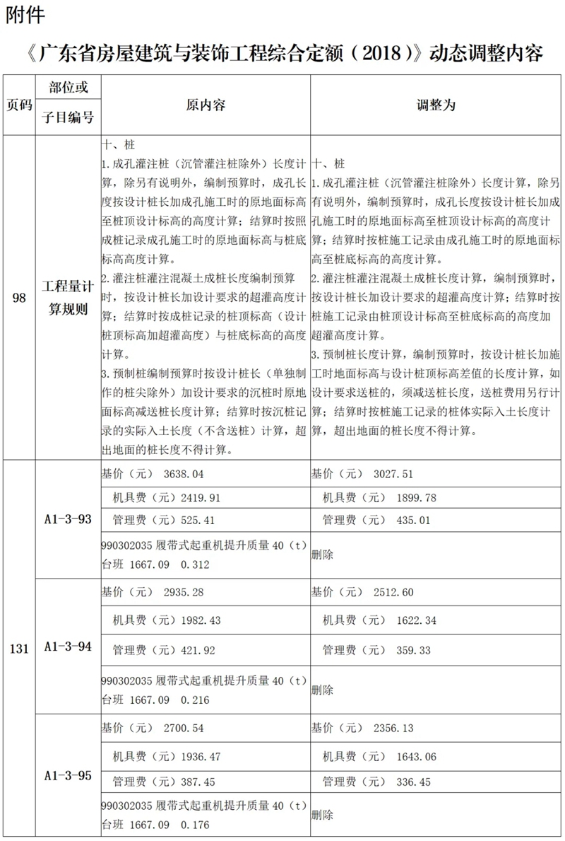 本調整內容與我省現(xiàn)行工程計價依據(jù)配套使用,除合同另有約定外,已經(jīng)合同雙方確認的工程造價成果文件不作調整。執(zhí)行中遇到的問題,請通過廣東省工程造價信息化平臺—建設工程定額動態(tài)管理系統(tǒng)及時反饋。