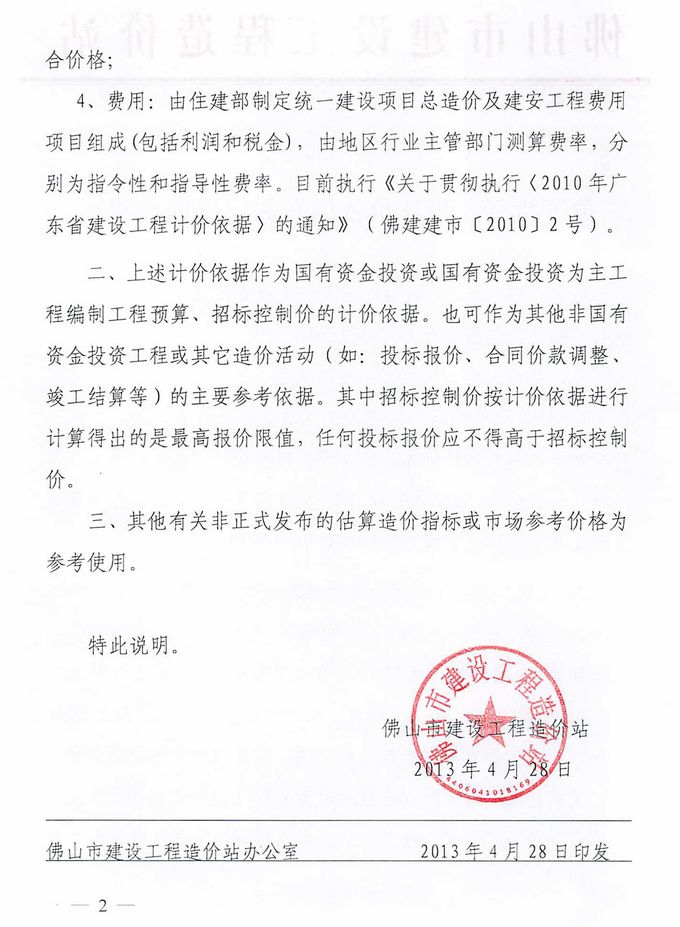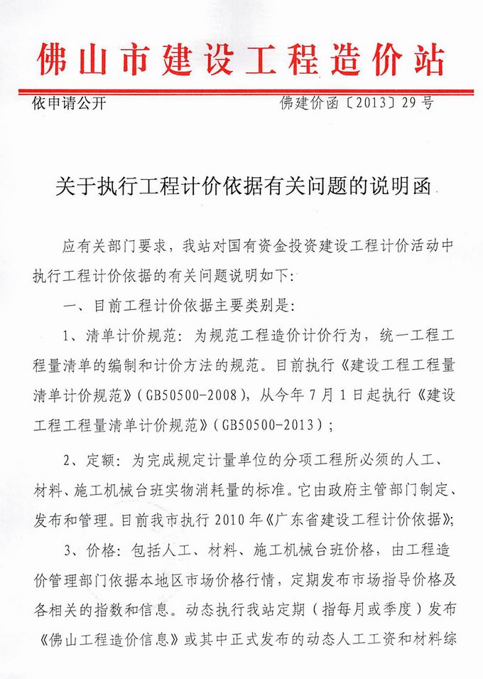 關(guān)于執(zhí)行工程計價依據(jù)有關(guān)問題的說明函