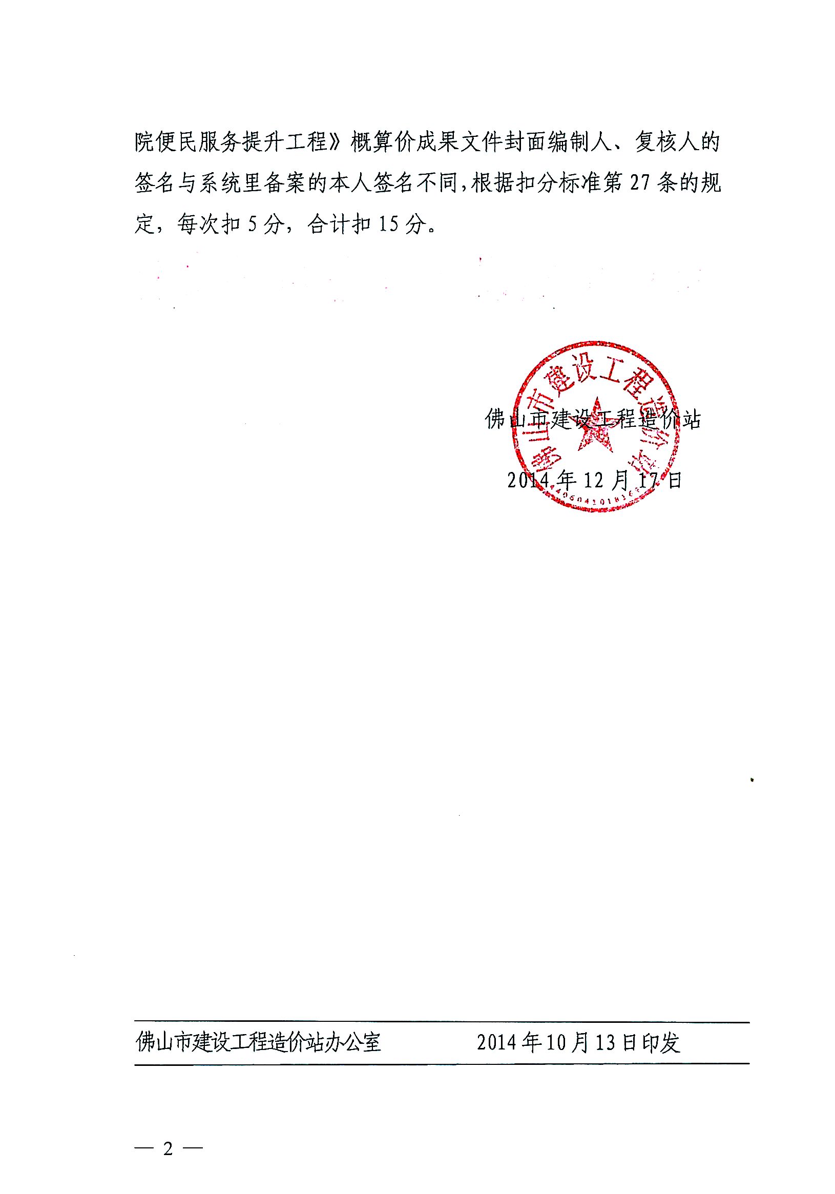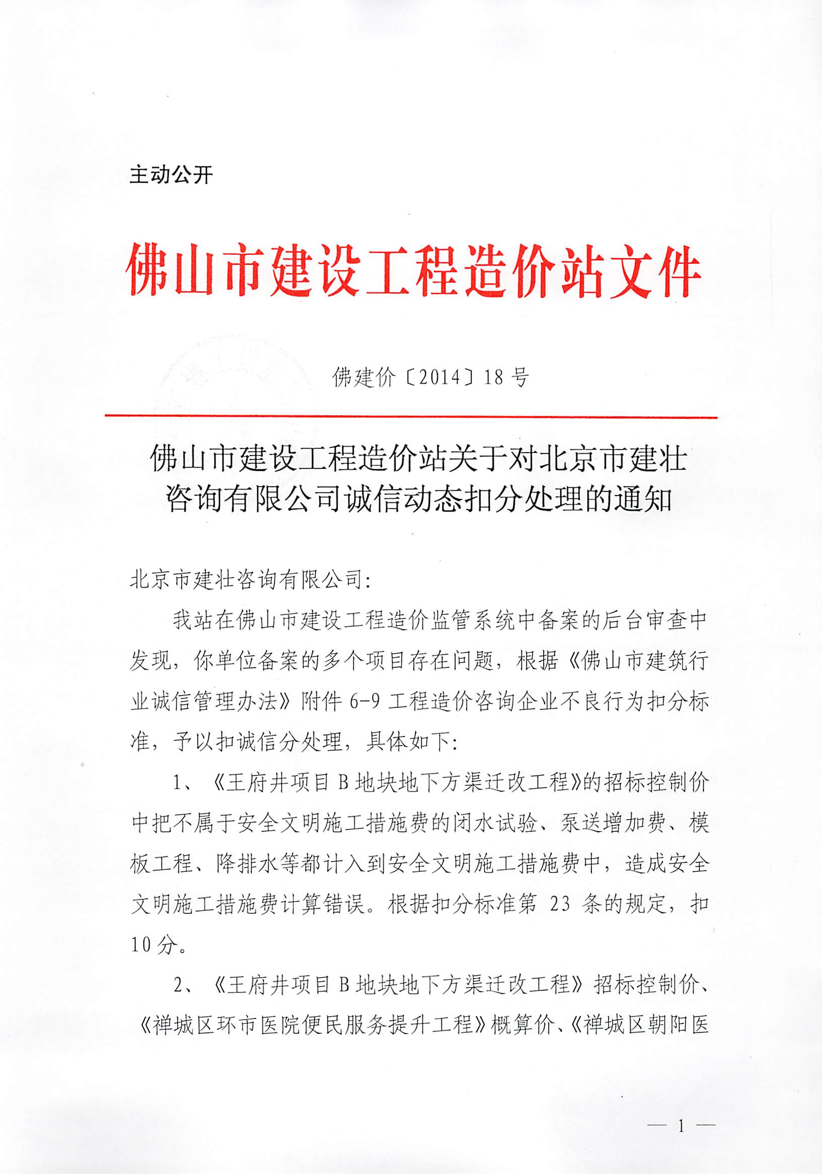 佛山市建設工程造價站關于對北京市建壯咨詢有限公司誠信動態扣分處理的通知