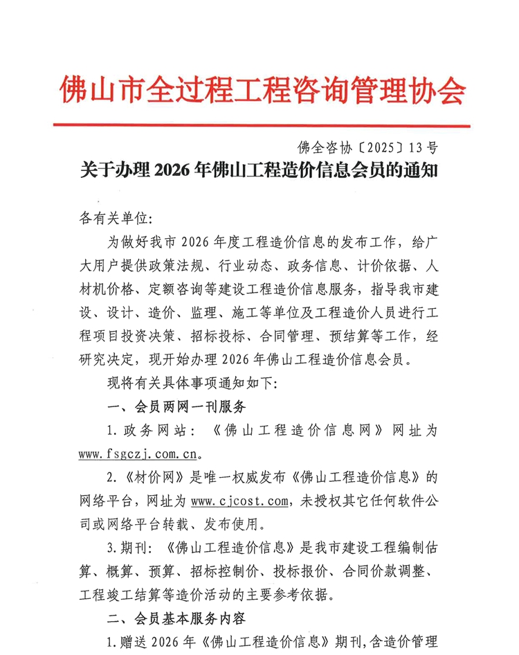 關(guān)于辦理2026年佛山工程造價(jià)信息會員的通知