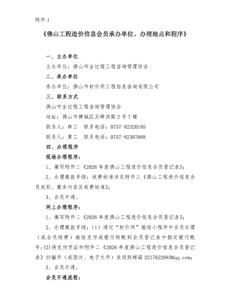 附件1:《佛山工程造價(jià)信息會員承辦單位、辦理地點(diǎn)和程序》