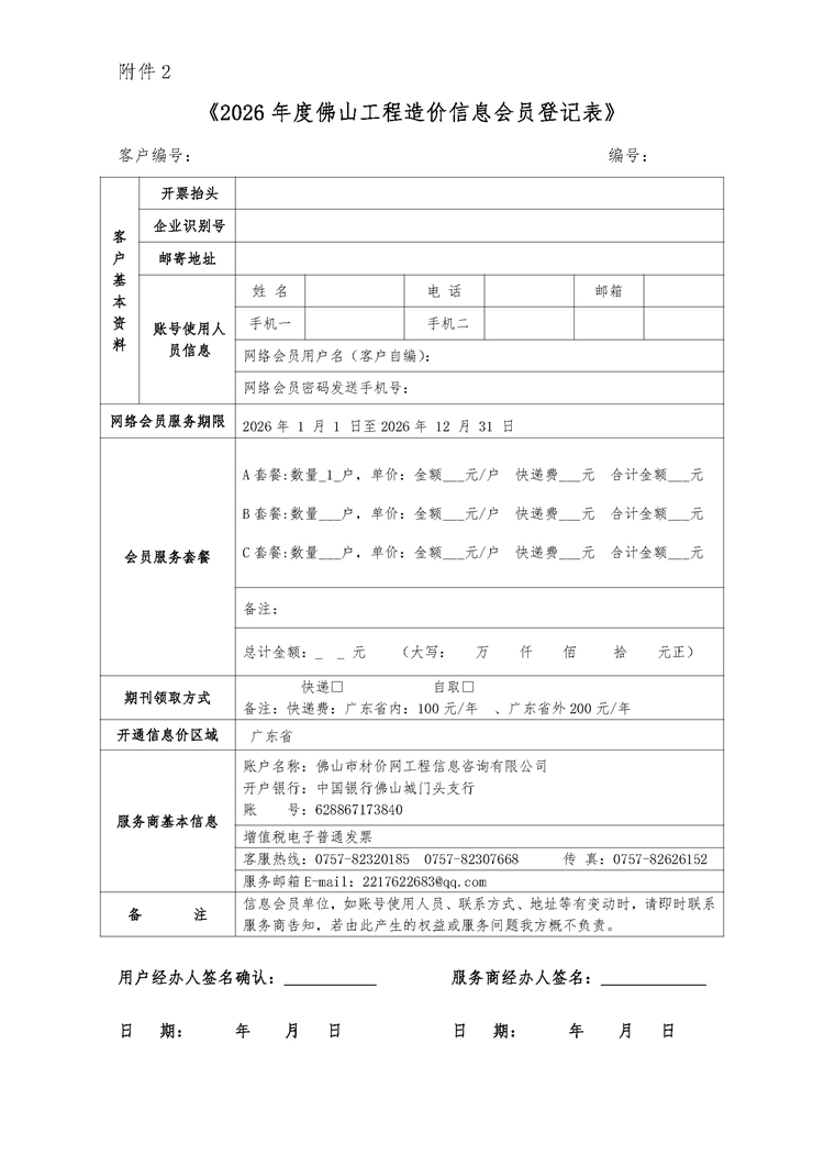 附件2:《2026年度佛山工程造價(jià)信息會員登記表》