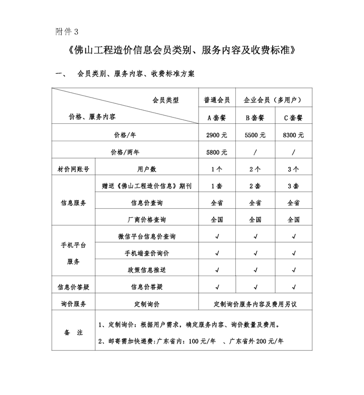 附件3:《佛山工程造價(jià)信息會員類別、服務(wù)內(nèi)容及收費(fèi)標(biāo)準(zhǔn)》