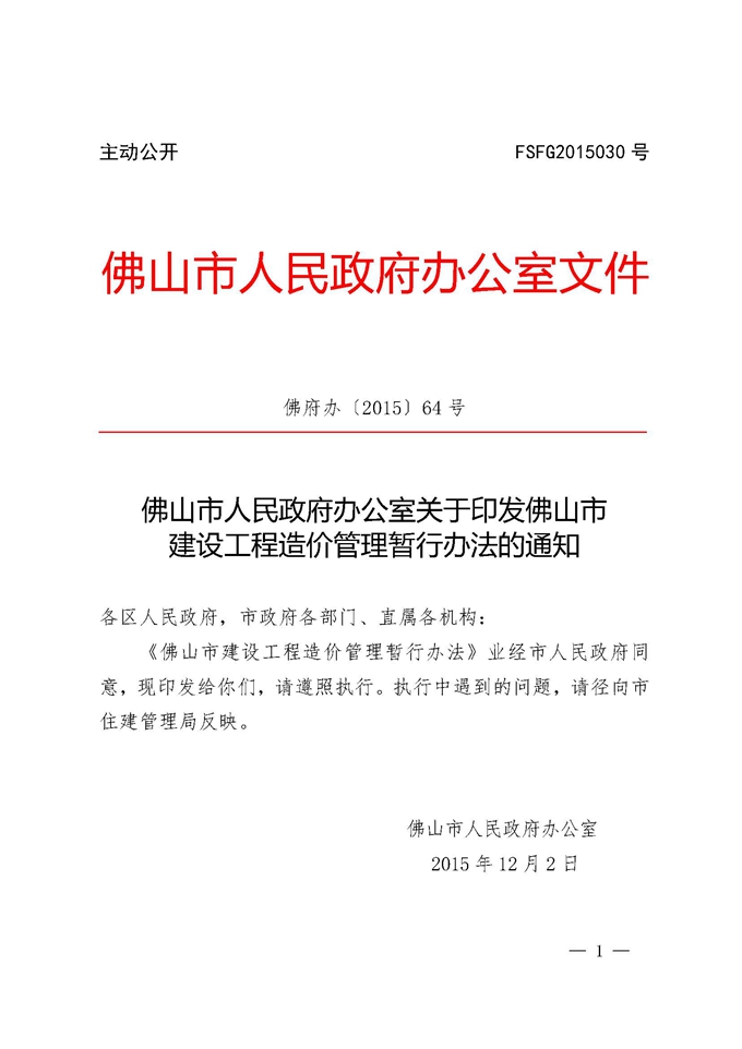 附件:佛山市人民政府辦公室關于印發佛山市建設工程造價管理暫行辦法的通知